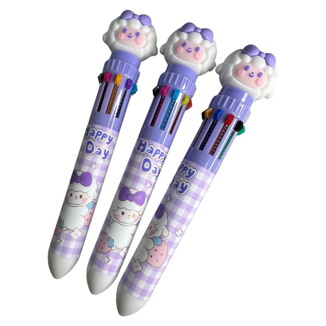 Canetas decoradas de ovelinhas com 10 cores, pra deixar suas anotações mais lindas e organizadas